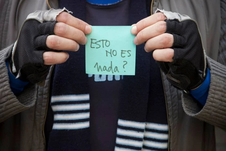 Location: Calle Merced con Jose Miguel de la Barra / Santiago de chile Area Covered: 9x4 metros aprox. Materials: 3500 post it , Sharpies in different tones of grey. Number of participants: 400 personas aprox. On view: 1 día_ 1 Day Photos by: Constanza García. Collaborator: Antonia Acuña.